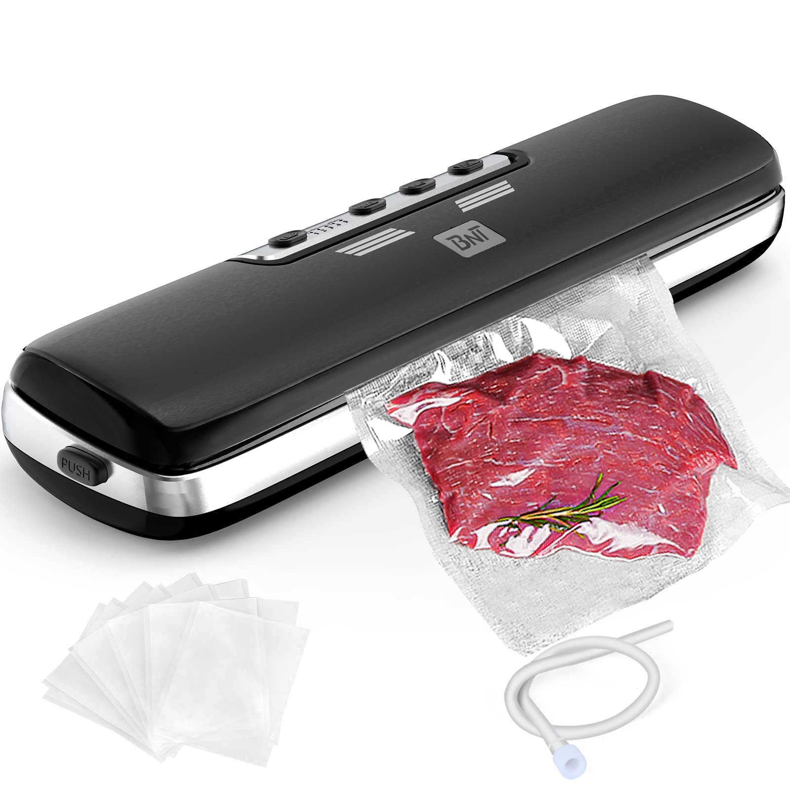 Amazon Com Vacuum Sealer Machine With 15 Sealed Bags Hose Suction Bnt Compact Food Vacuum Sealer With Dry Moist Fresh Modes For All Saving Needs Home Kitchen